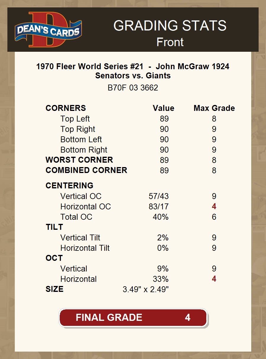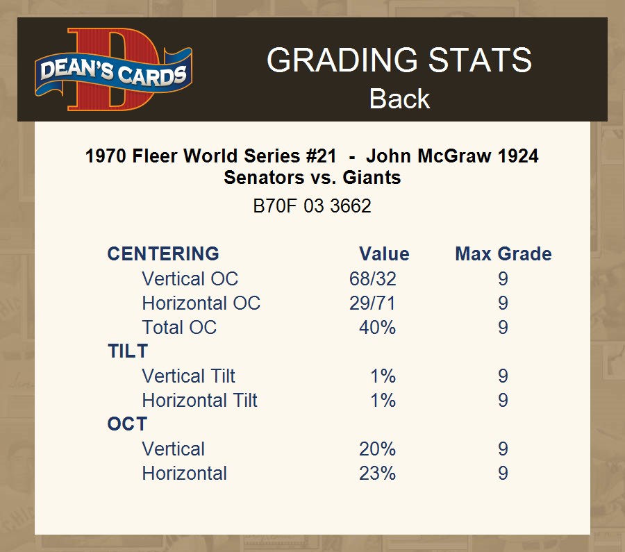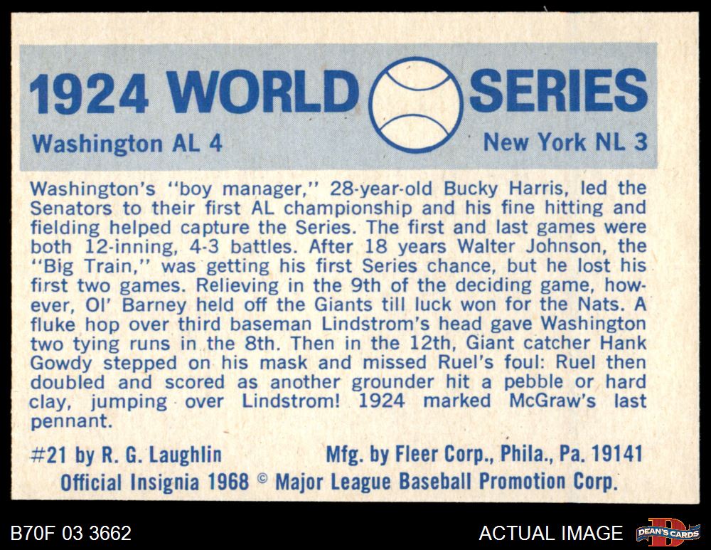 1970 Fleer World Series #21 - John McGraw 1924 Senators vs. Giants 4 - VG/EX