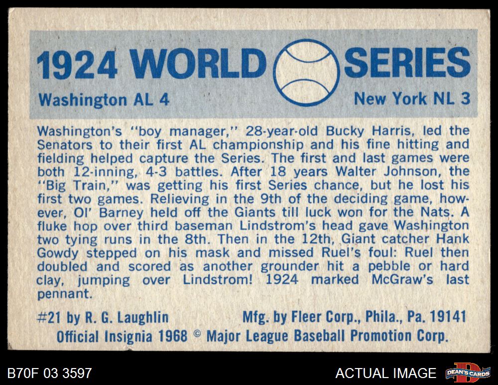 1970 Fleer World Series #21 - John McGraw 1924 Senators vs. Giants 6 - EX/MT