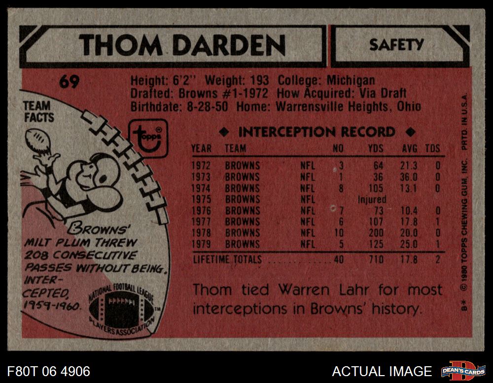 1980 Topps #69 Thom Darden 4 - VG/EX