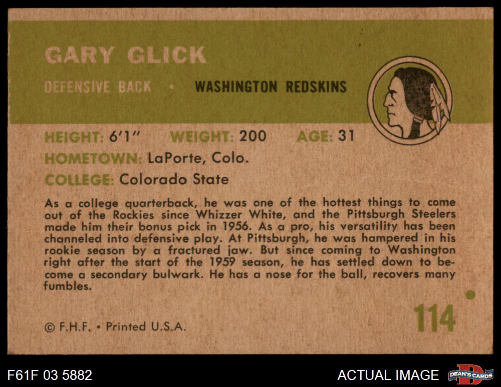 1961 Fleer #114 Gary Glick 2 - GOOD