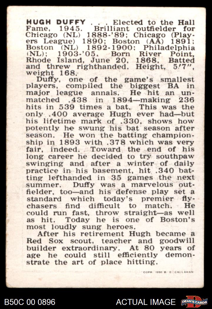 1950 Callahan Hall of Fame Hugh Duffy 5.5 - EX+