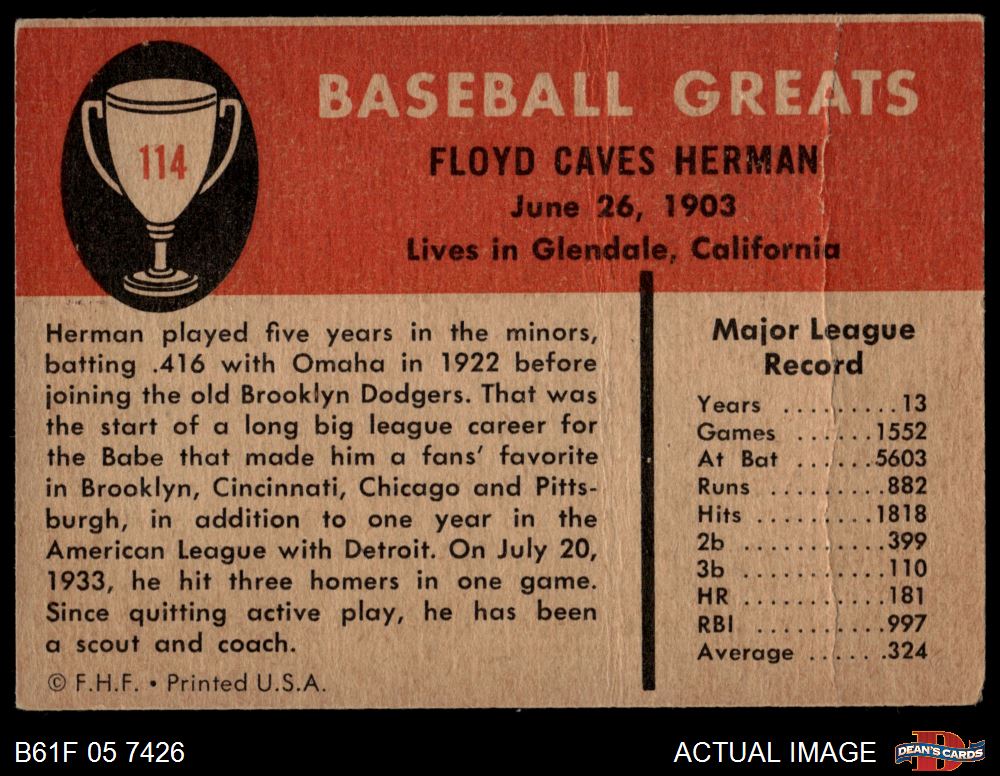 1961 Fleer #114 Babe Herman 1.5 - FAIR