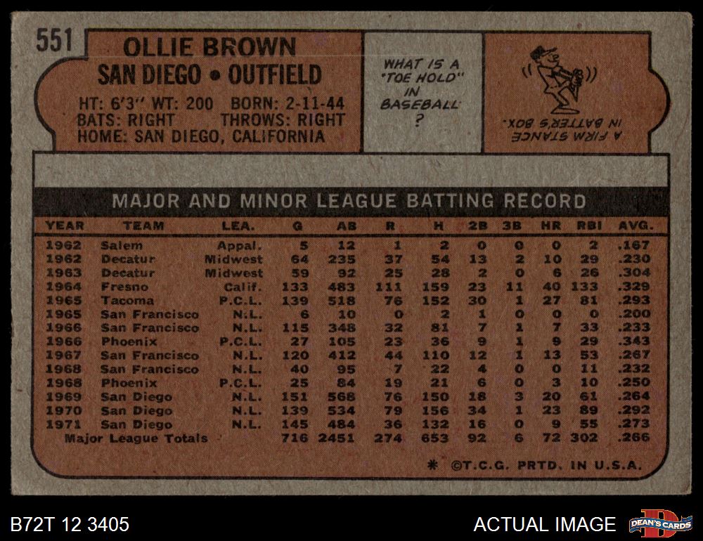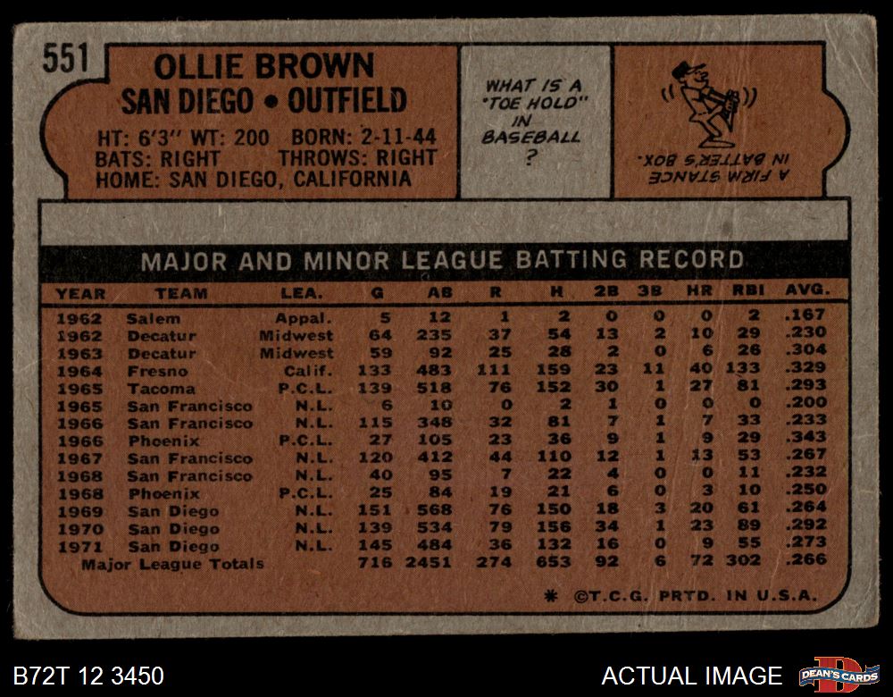 1972 Topps #551 Ollie Brown 1.5 - FAIR
