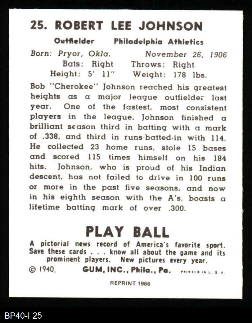 1940 Play Ball Reprint (1,465 available)1940 Play Ball Reprint Athletics (88 available)