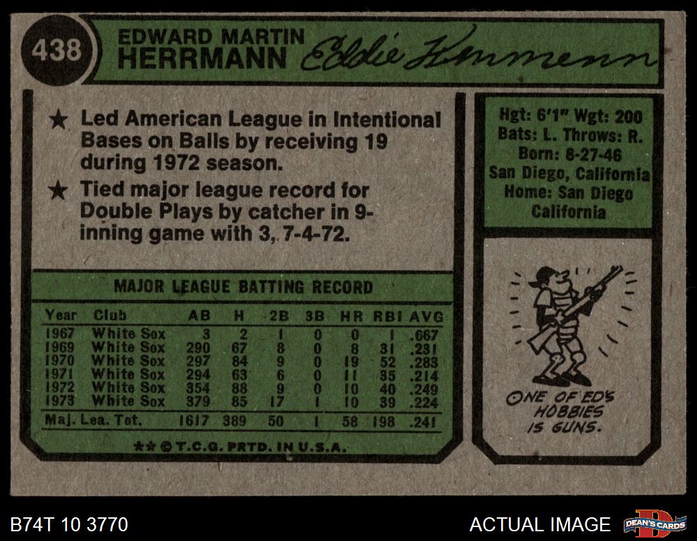 1974 Topps #438 Ed Herrmann 4 - VG/EX