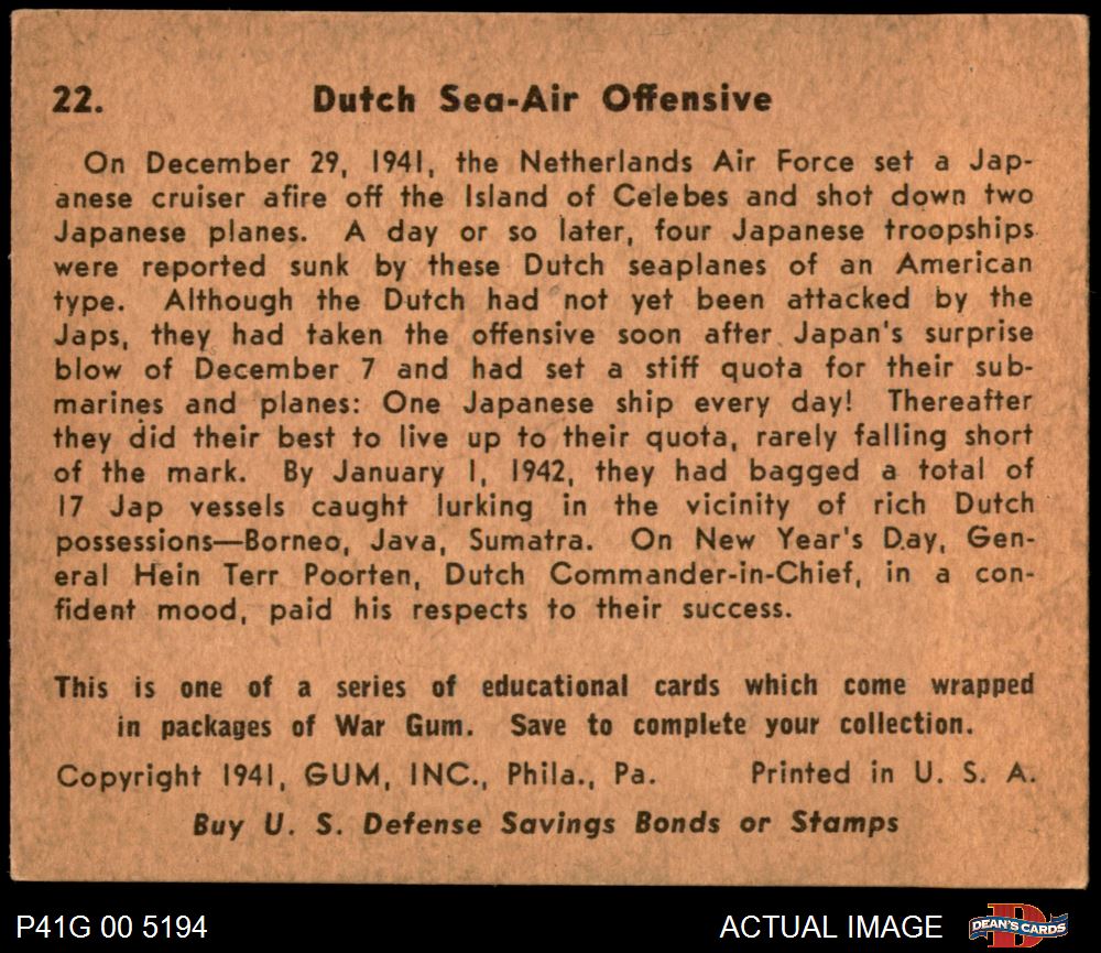 1941 War Gum #22 Dutch Sea-Air Offensive 6 - EX/MT