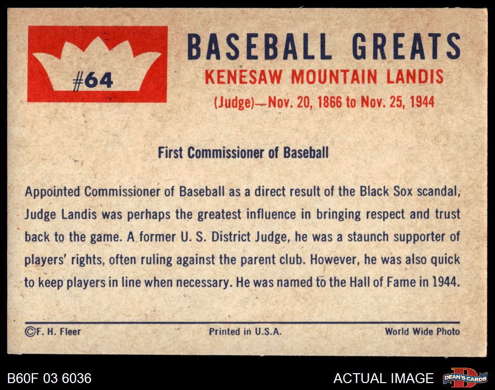 1960 Fleer #64 Judge Landis