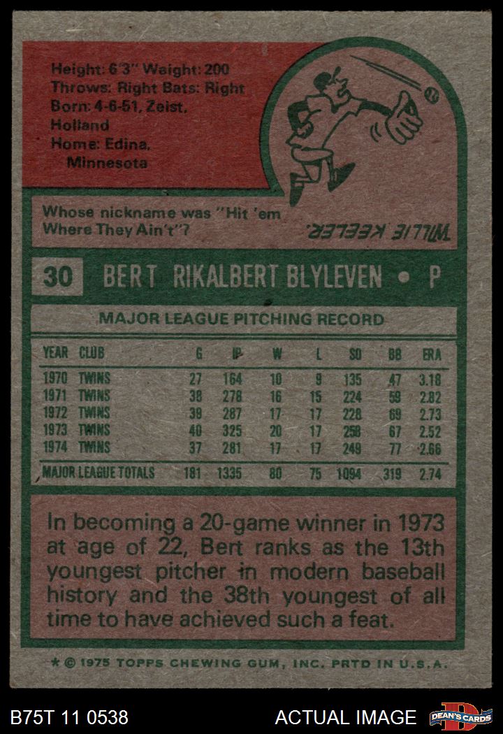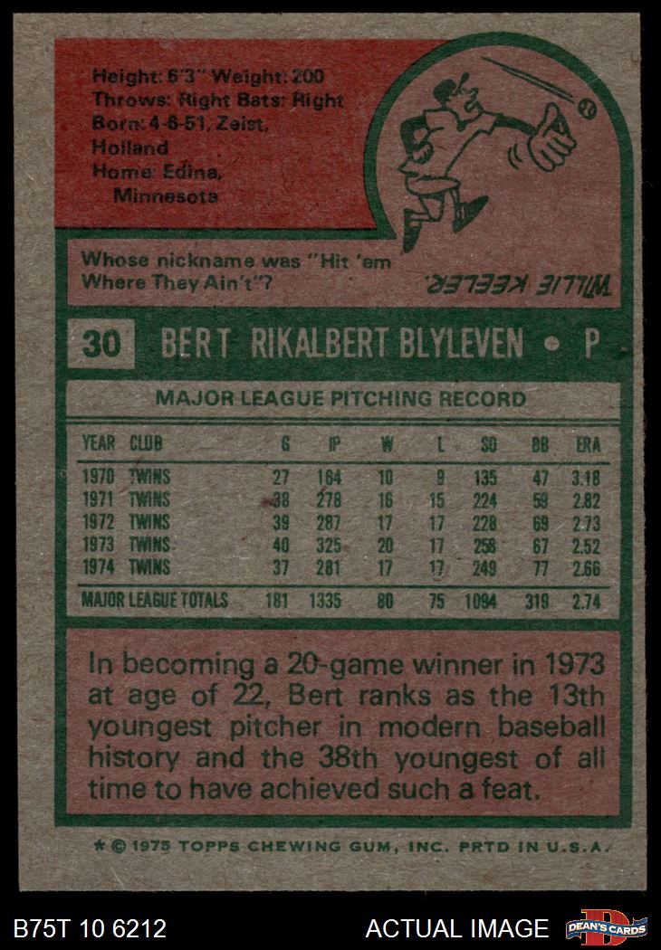 1975 Topps #30 Bert Blyleven 6 - EX/MT