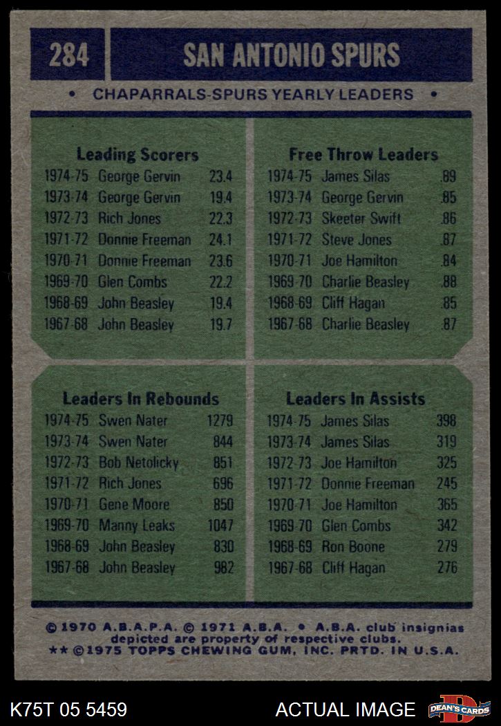 1975 Topps #284 - James Silas / Swen Nater/George Gervin Spurs Leaders 7 - NM