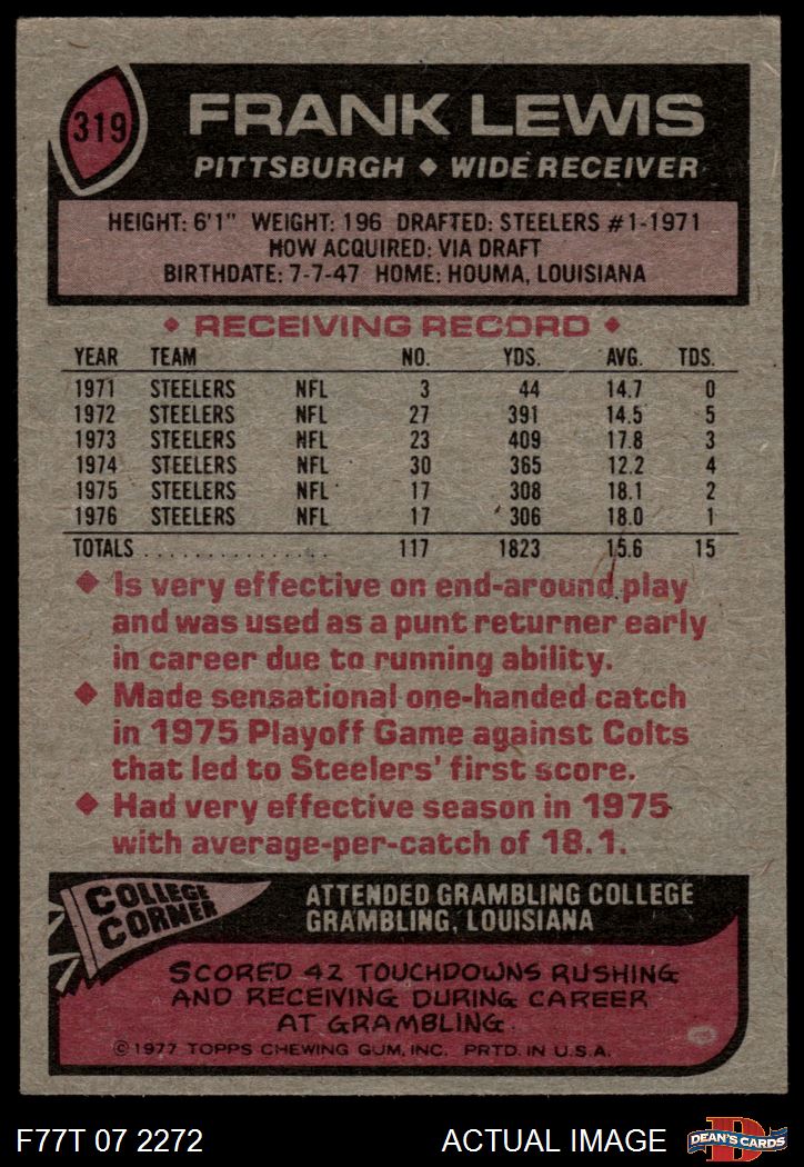 1977 Topps #319 Frank Lewis