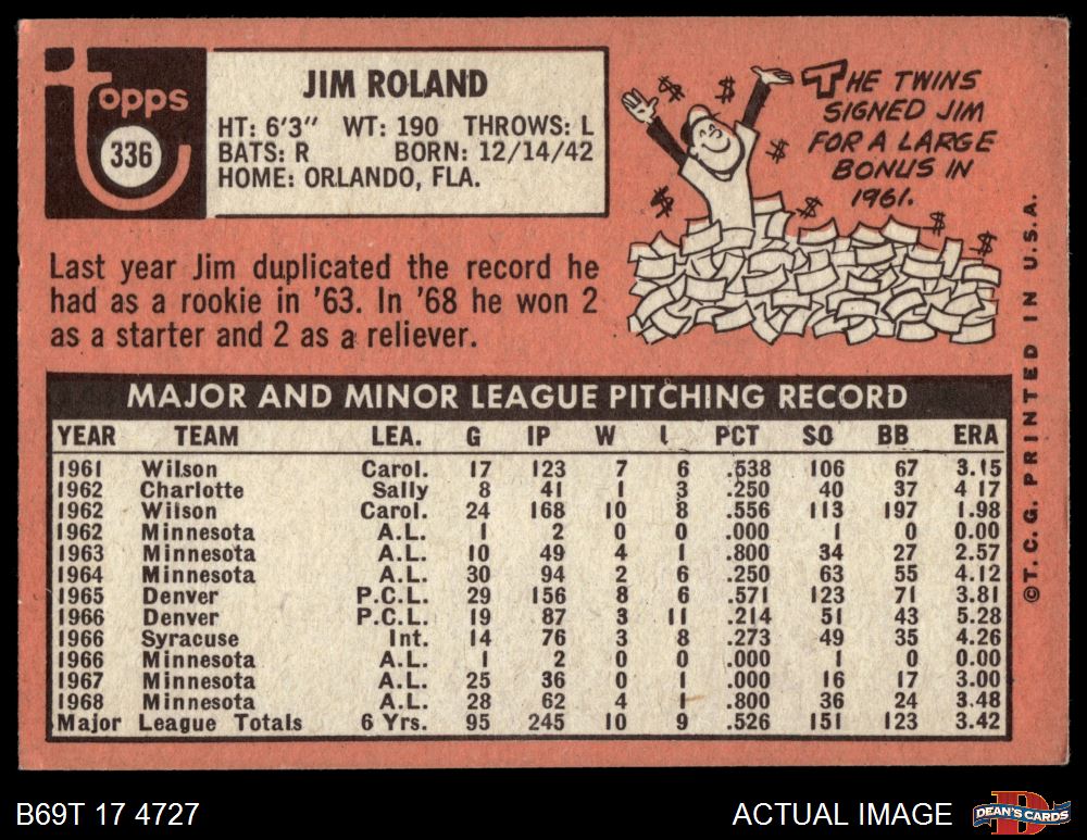 1969 Topps #336 Jim Roland 1.5 - FAIR