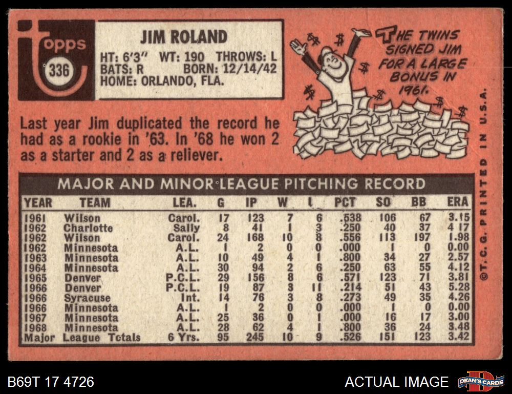 1969 Topps #336 Jim Roland 3.5 - VG+