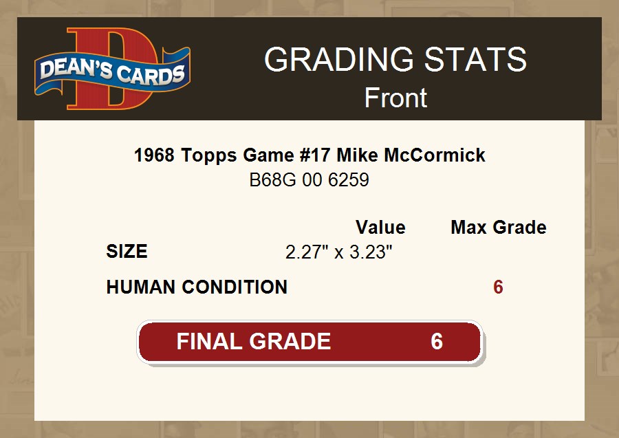 1968 Topps Game #17 Mike McCormick 6 - EX/MT
