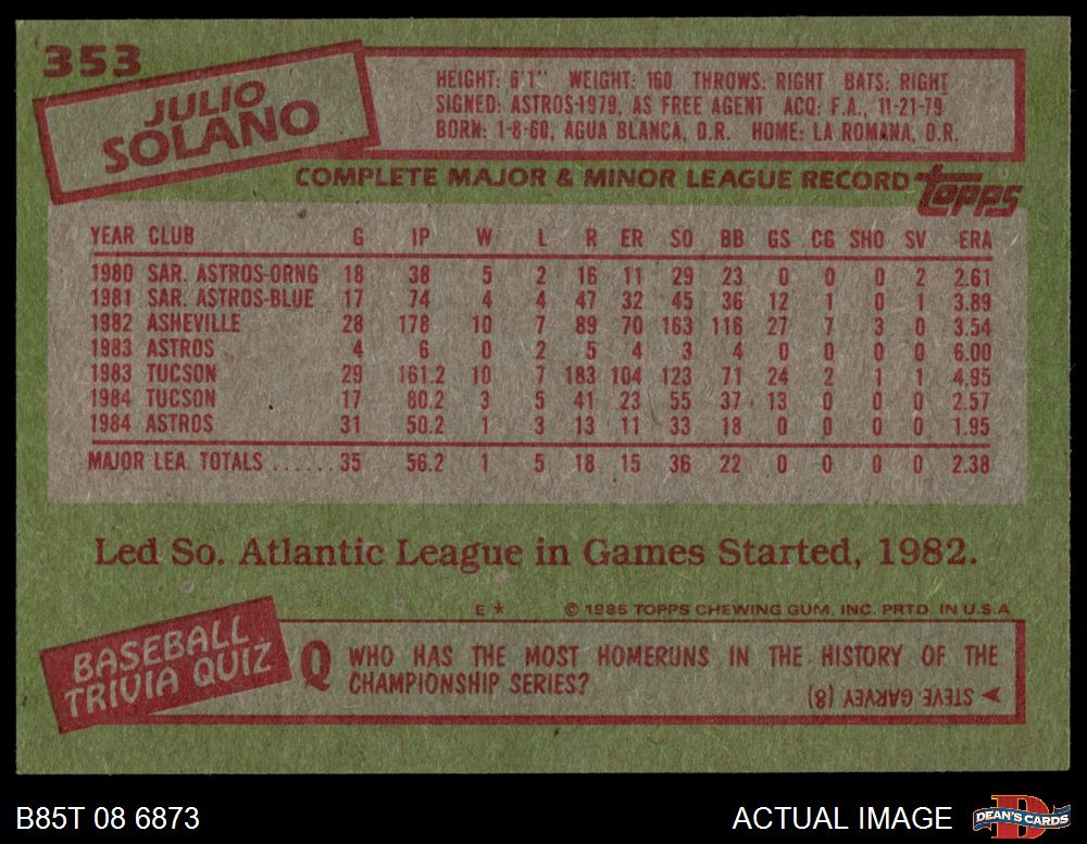 1985 Topps Baseball Cards (11,248 available)1985 Topps Astros (490 available)