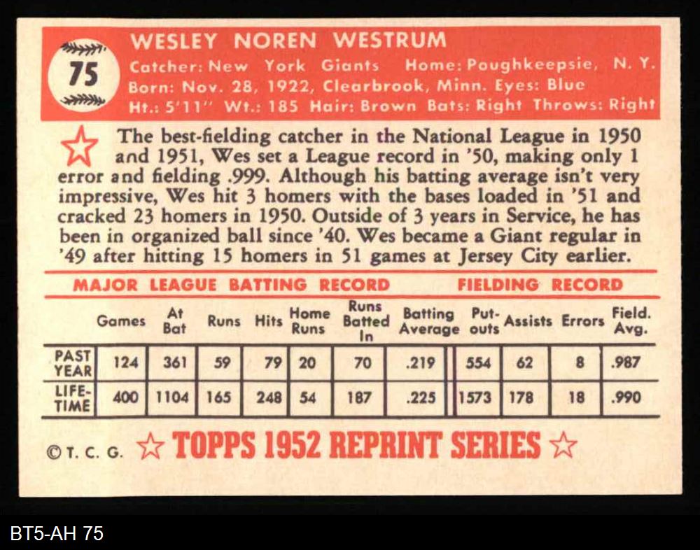 1952 Topps REPRINT #75 Wes Westrum 8 - NM/MT