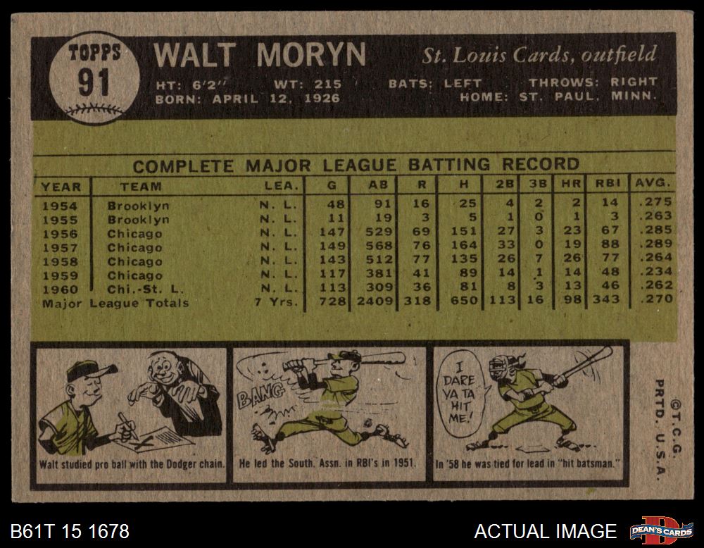 1961 Topps #91 Walt Moryn 3.5 - VG+