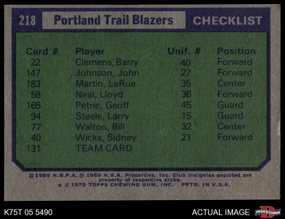 1975-76 Topps Basketball Cards (2,988 available)1975 Topps Trail Blazers (109 available)
