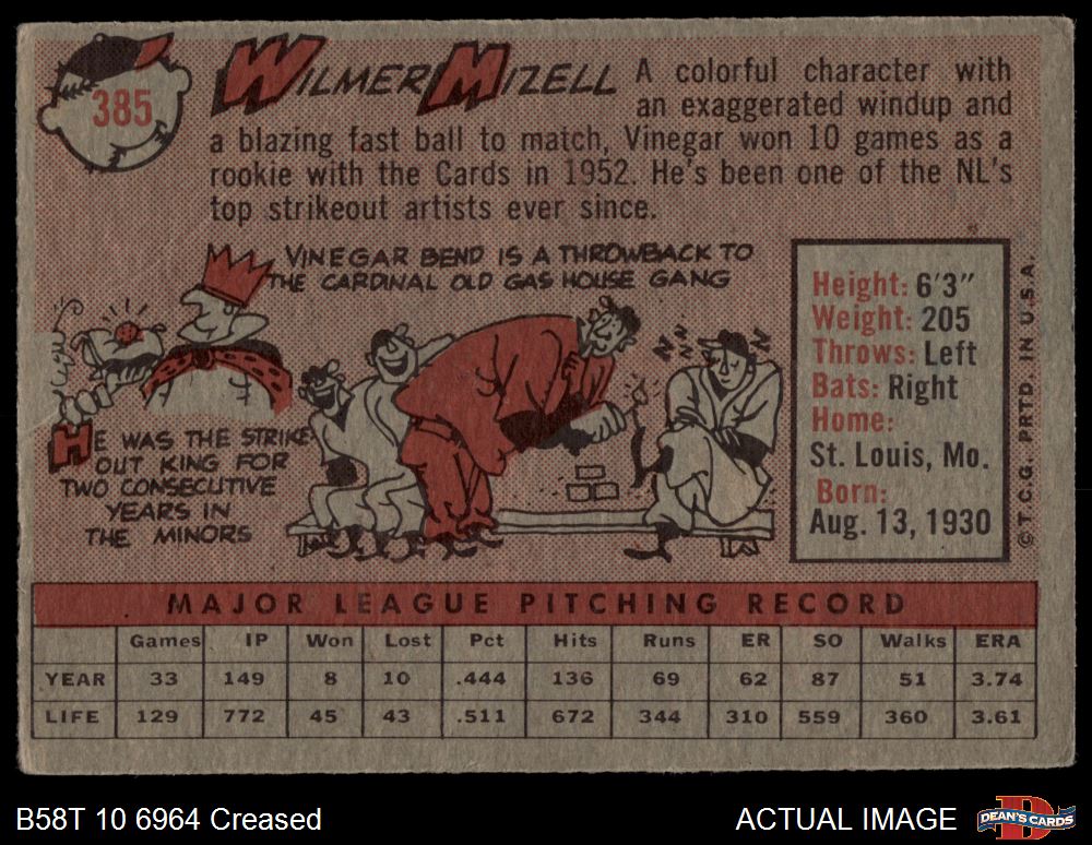 1958 Topps #385 Wilmer Mizell 3 - VG