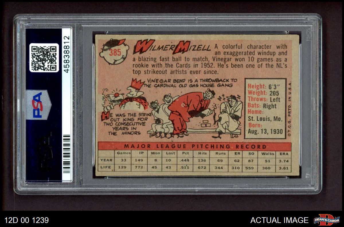 1958 Topps #385 Wilmer Mizell PSA 7 - NM