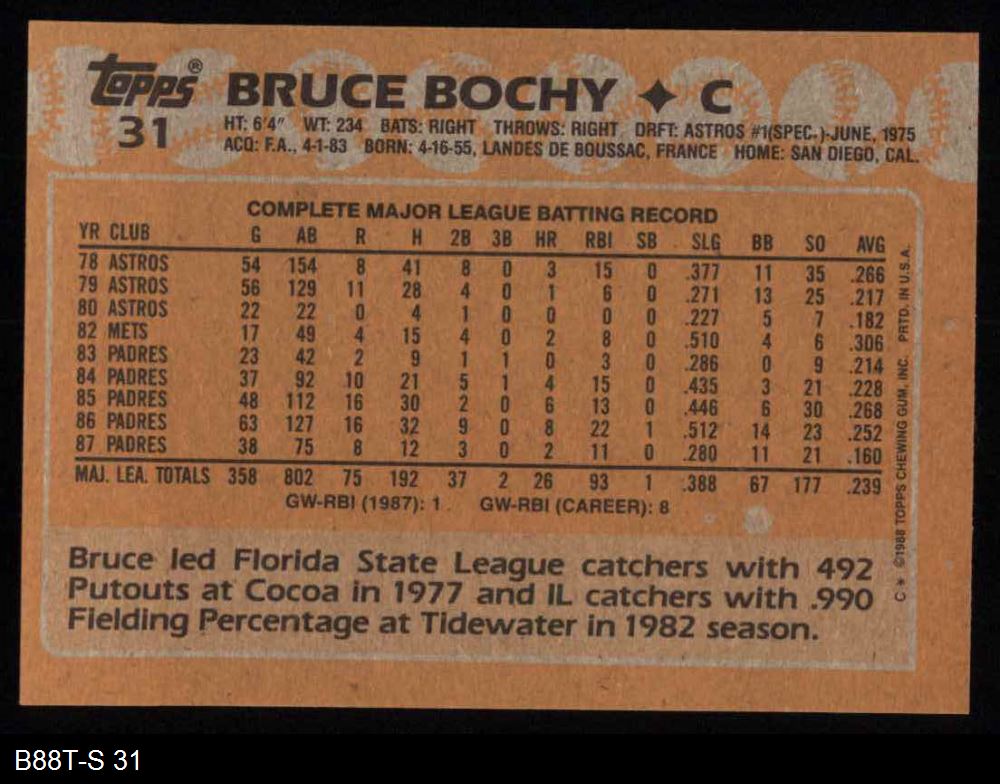 1988 Topps #31 Bruce Bochy
