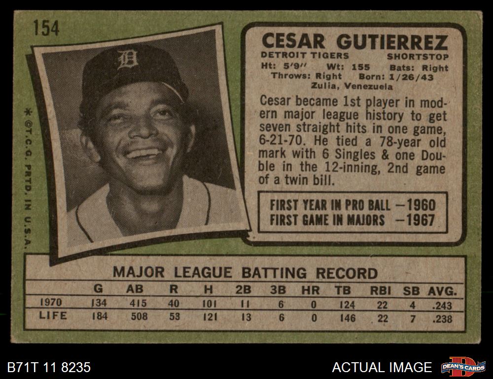 1971 Topps #154 Cesar Gutierrez