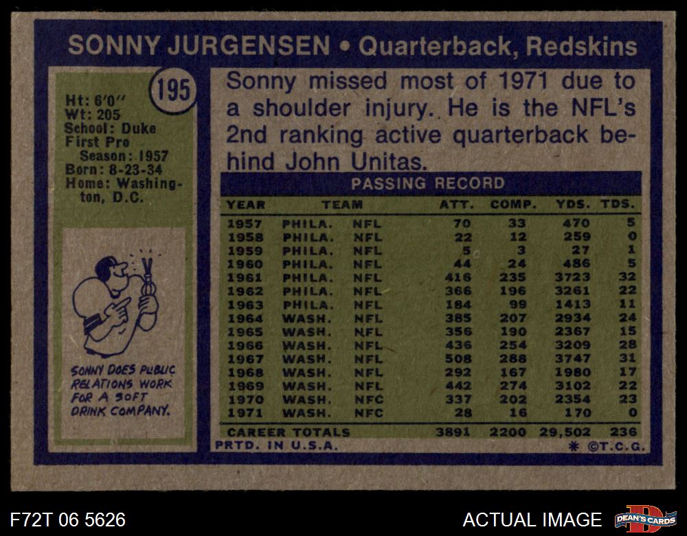 1972 Topps #195 Sonny Jurgensen 4 - VG/EX