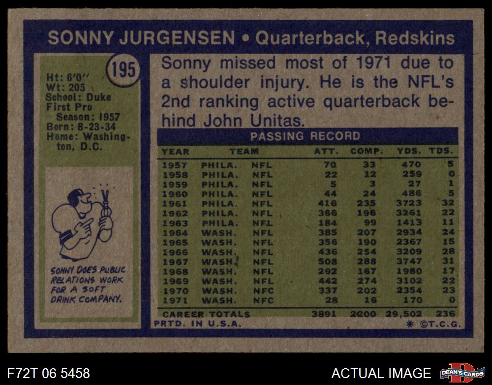 1972 Topps #195 Sonny Jurgensen 5 - EX