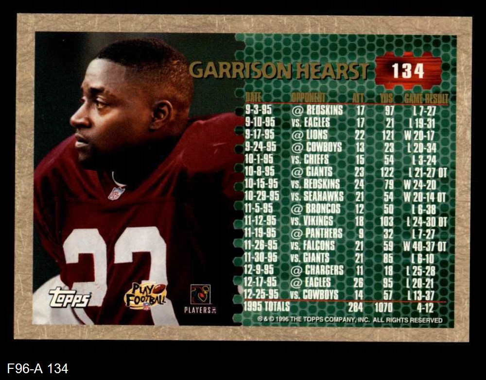 1996 Topps #134 - Garrison Hearst 1000 Yard Club 8 - NM/MT