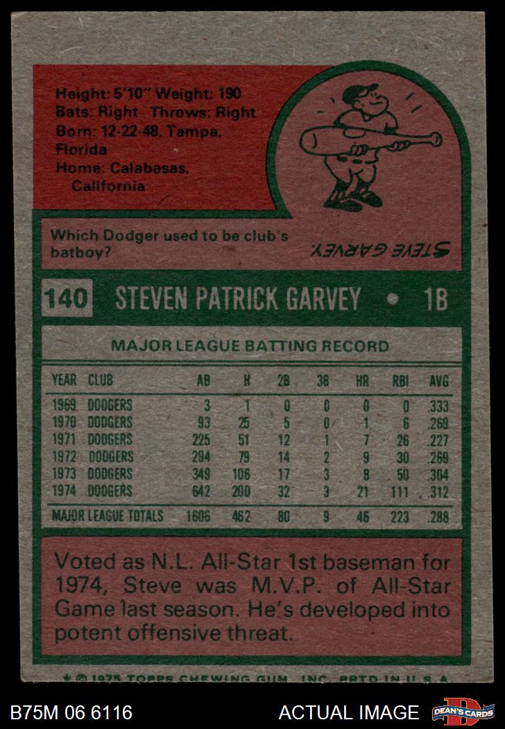1975 Topps Mini #140 Steve Garvey 3 - VG