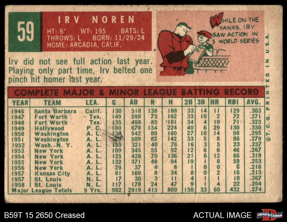 1959 Topps #59 Irv Noren 1.5 - FAIR