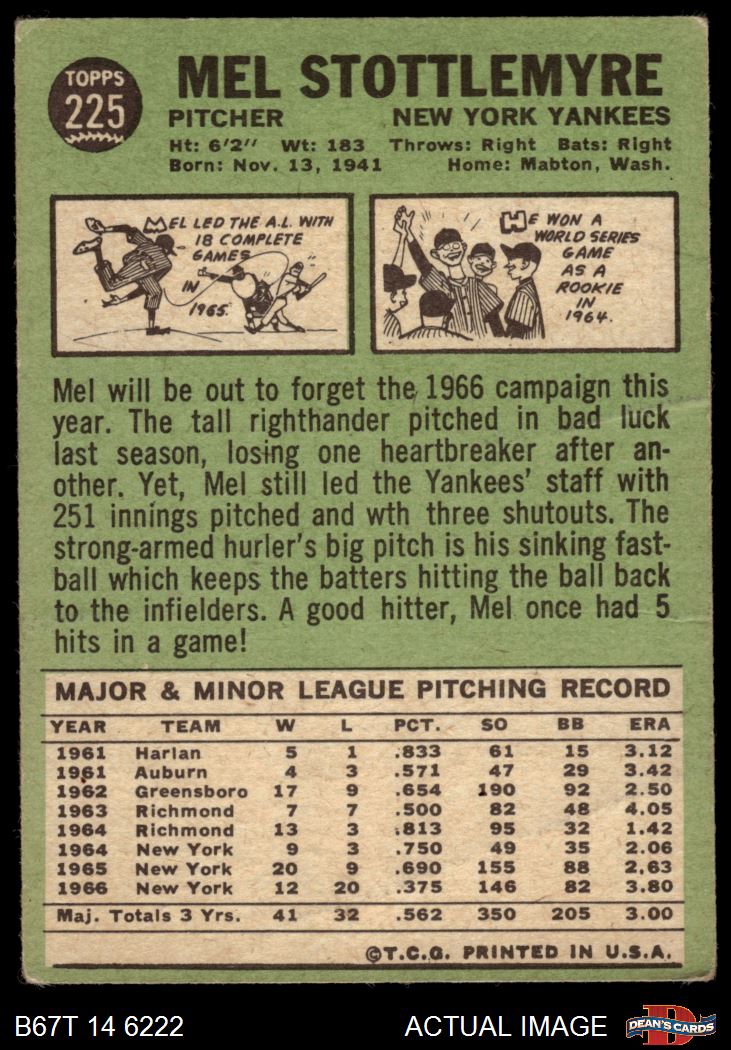 1967 Topps #225 Mel Stottlemyre 1.5 - FAIR