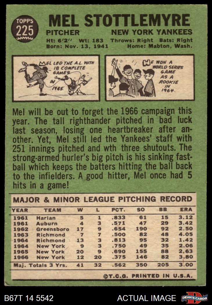 1967 Topps #225 Mel Stottlemyre 4 - VG/EX