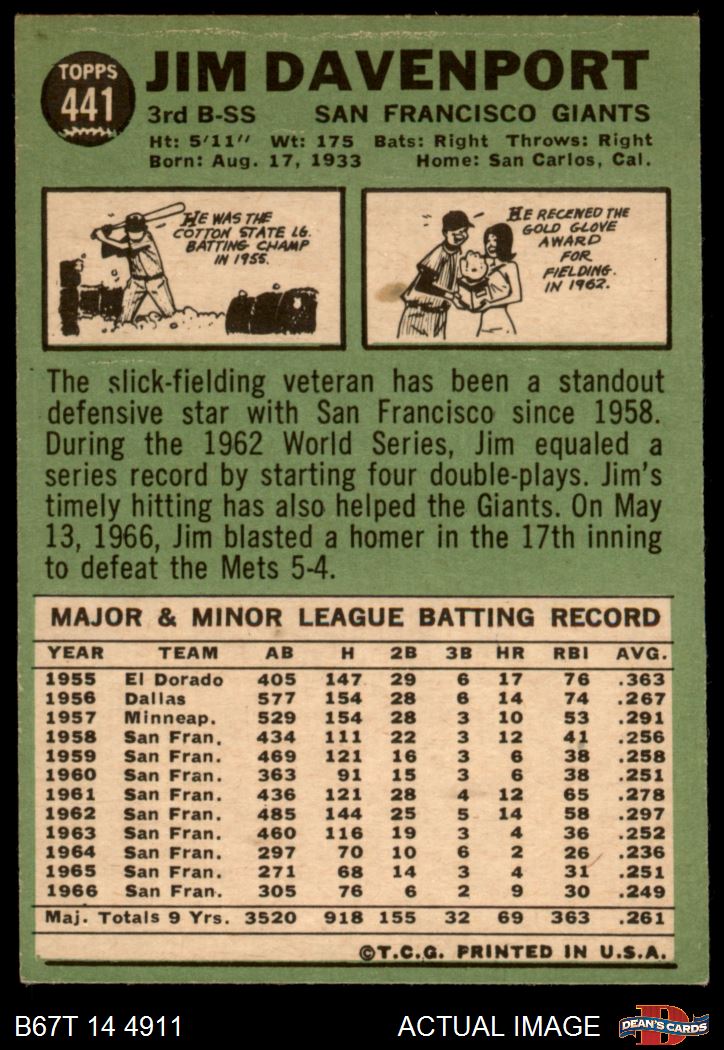 1967 Topps #441 Jim Davenport Front Thumbnail