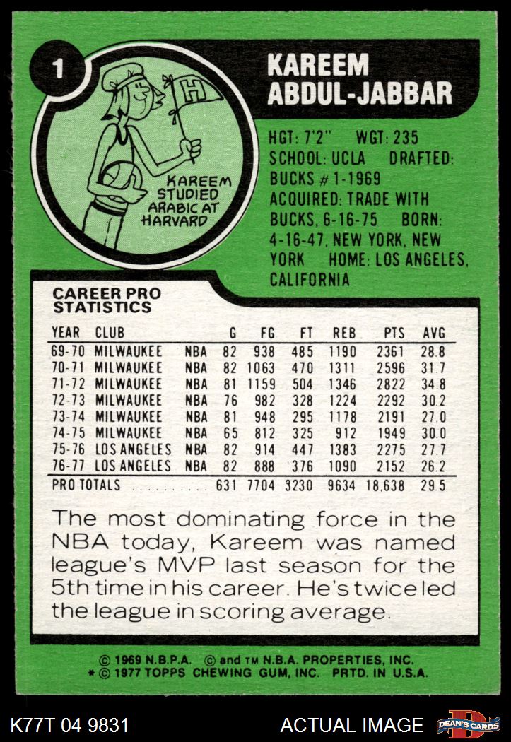 1977 Topps #1 Kareem Abdul-Jabbar 4 - VG/EX