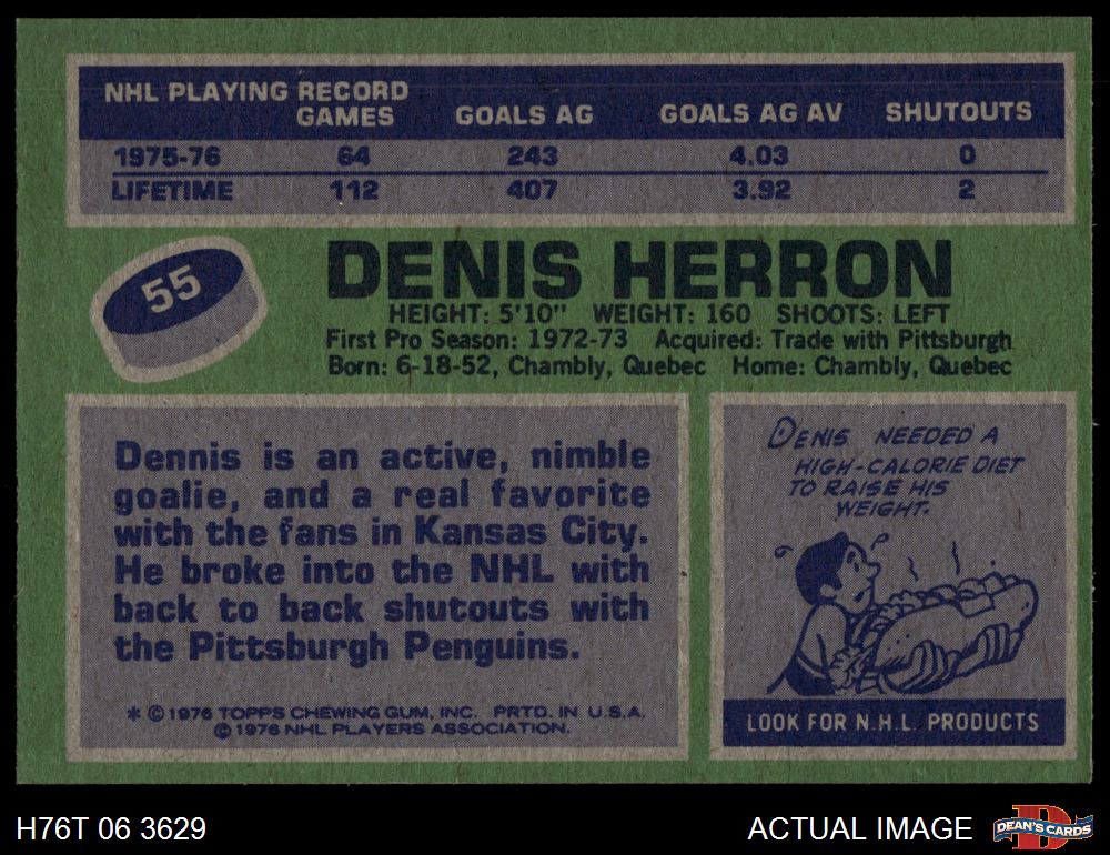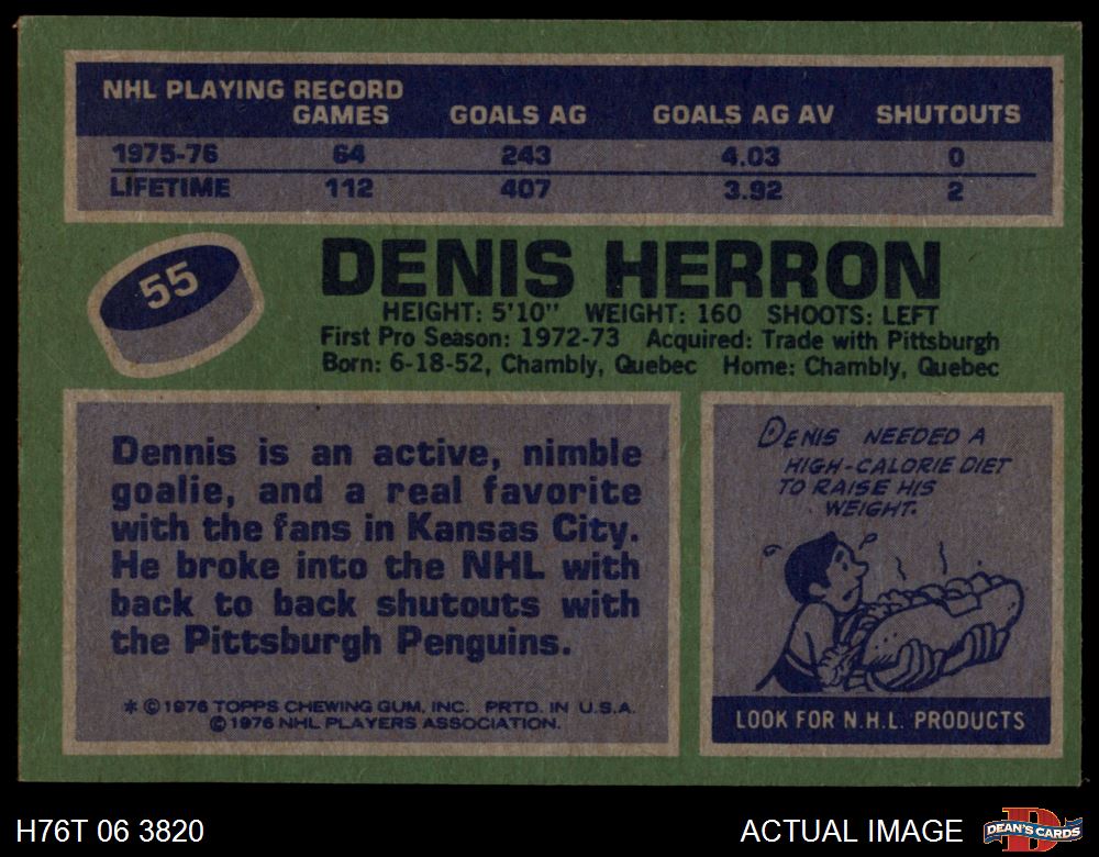 1976 Topps #55 Denis Herron