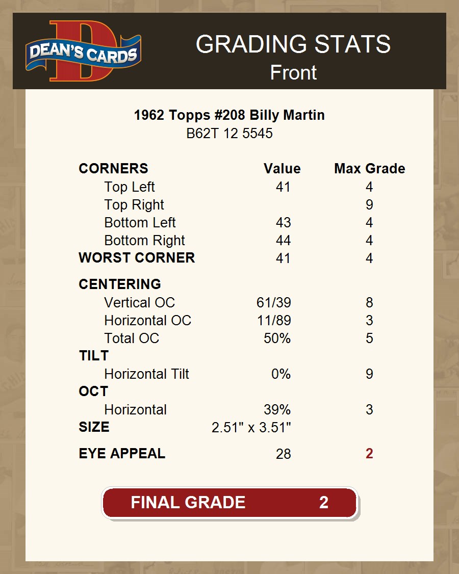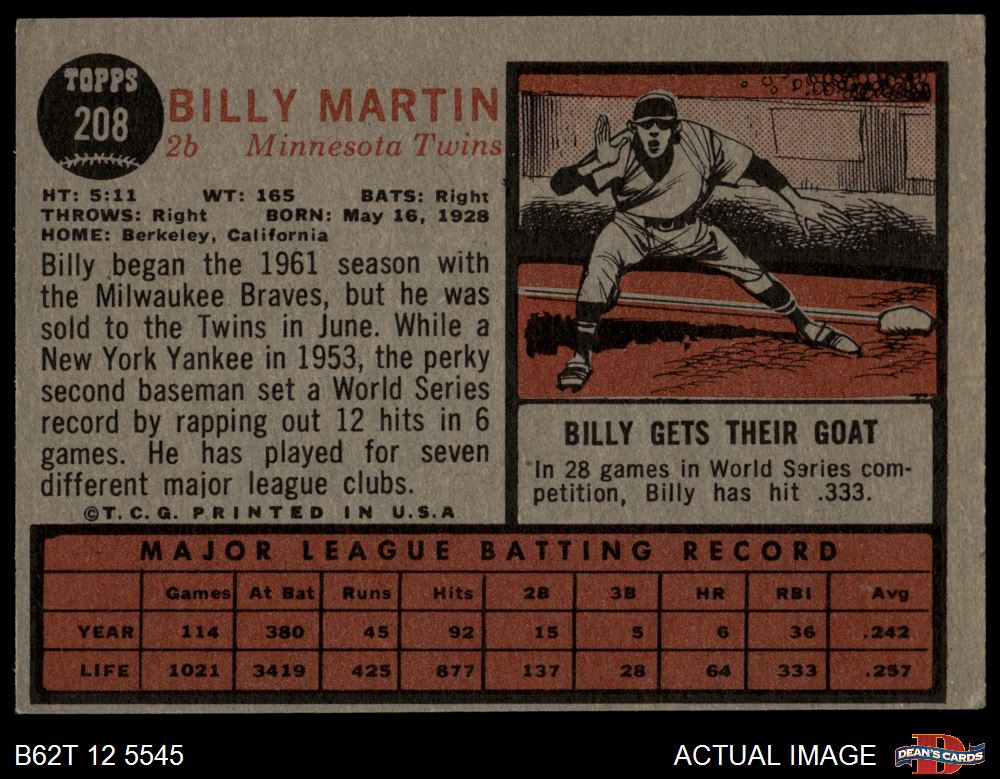1962 Topps #208 Billy Martin 2 - GOOD