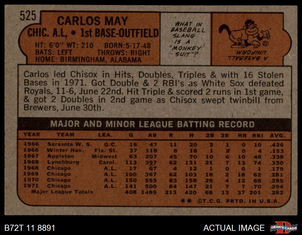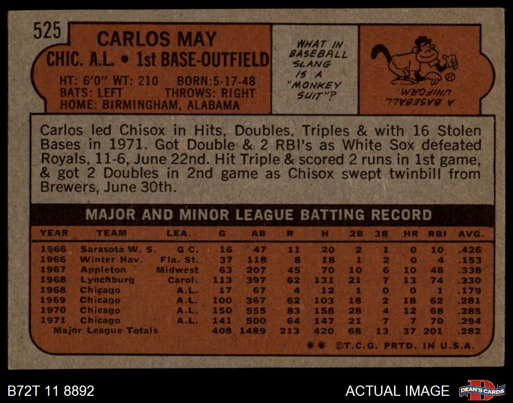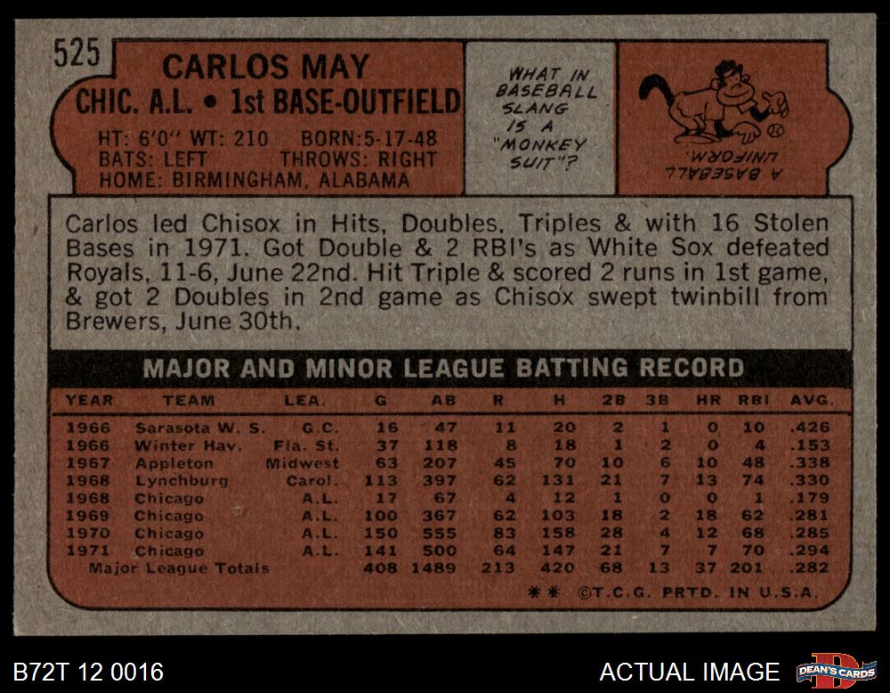 1972 Topps #525 Carlos May