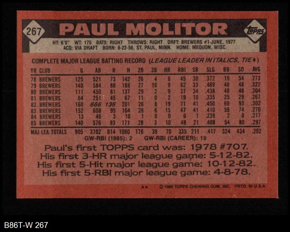 1986 Topps Baseball Cards (5,411 available)1986 Topps Brewers (293 available)