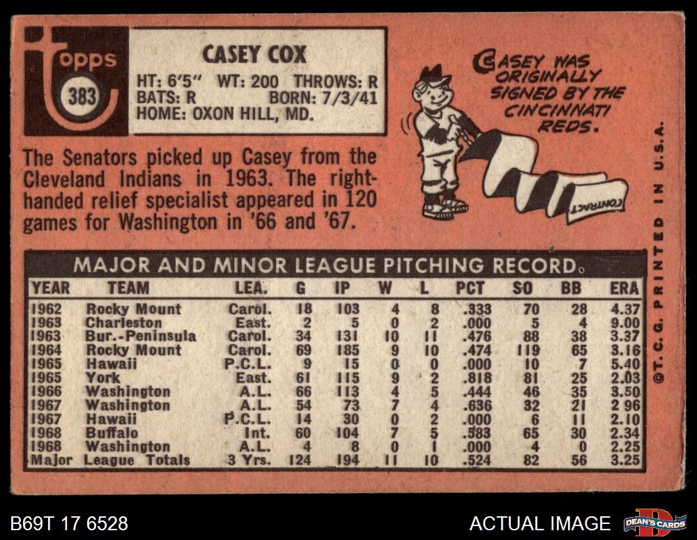 1969 Topps #383 Casey Cox 1.5 - FAIR