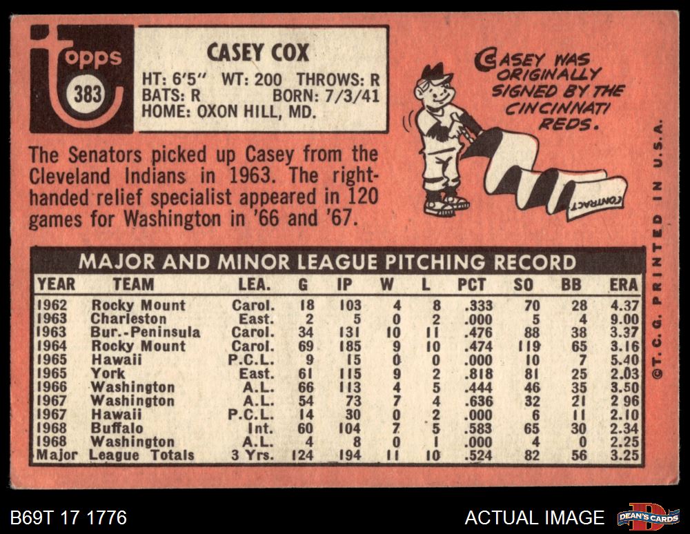 1969 Topps #383 Casey Cox 4 - VG/EX