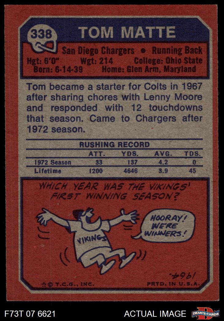 1973 Topps #338 Tom Matte 6 - EX/MT