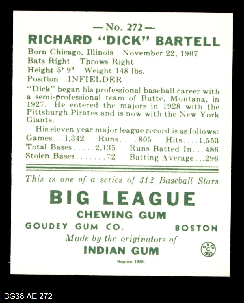 1938 Goudey Heads-Up Reprint #272 Dick Bartell