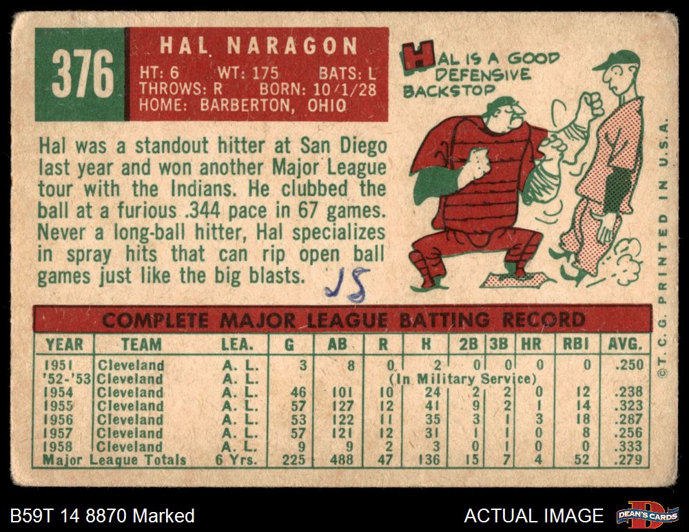 1959 Topps #376 Hal Naragon 1 - POOR