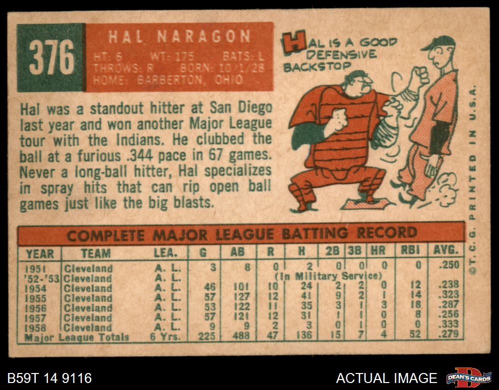 1959 Topps #376 Hal Naragon 3.5 - VG+