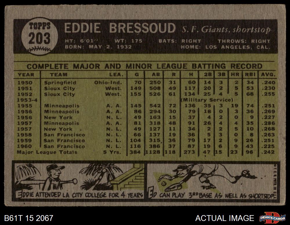 1961 Topps #203 Possible Jagged Blue Line Eddie Bressoud 2 - GOOD