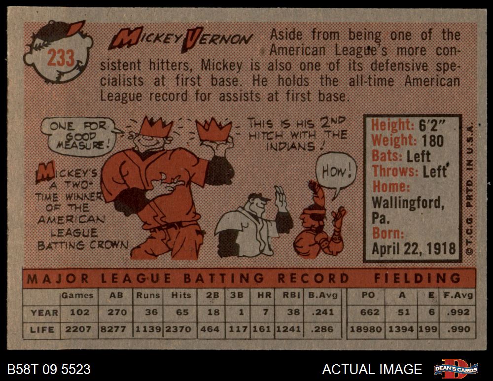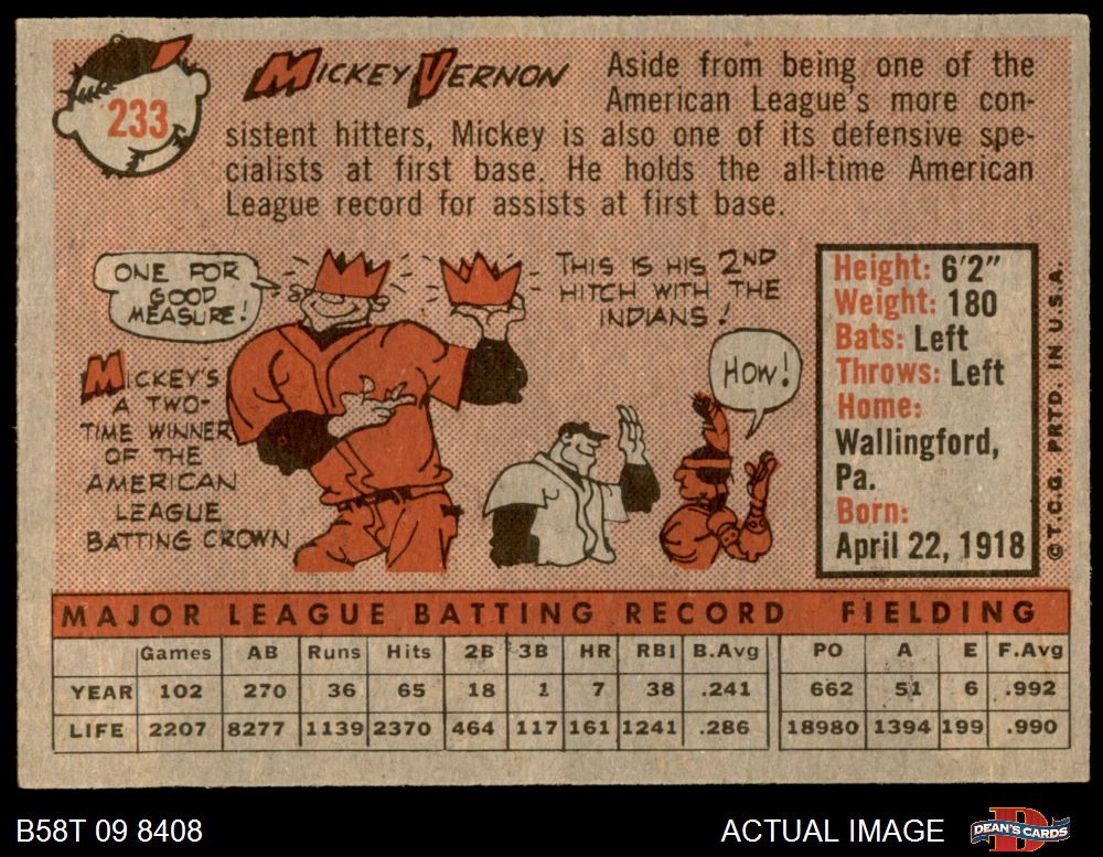 1958 Topps #233 Mickey Vernon 6 - EX/MT