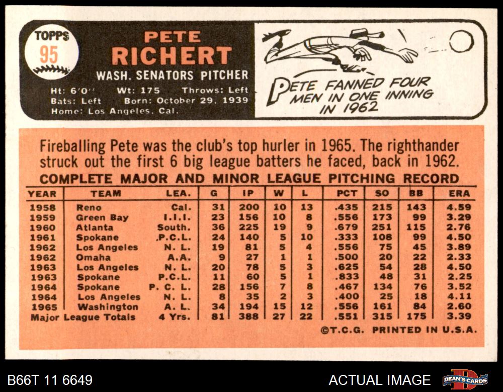 1966 Topps #95 Pete Richert 6 - EX/MT