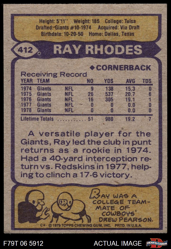 1979 Topps #412 Ray Rhodes 8 - NM/MT