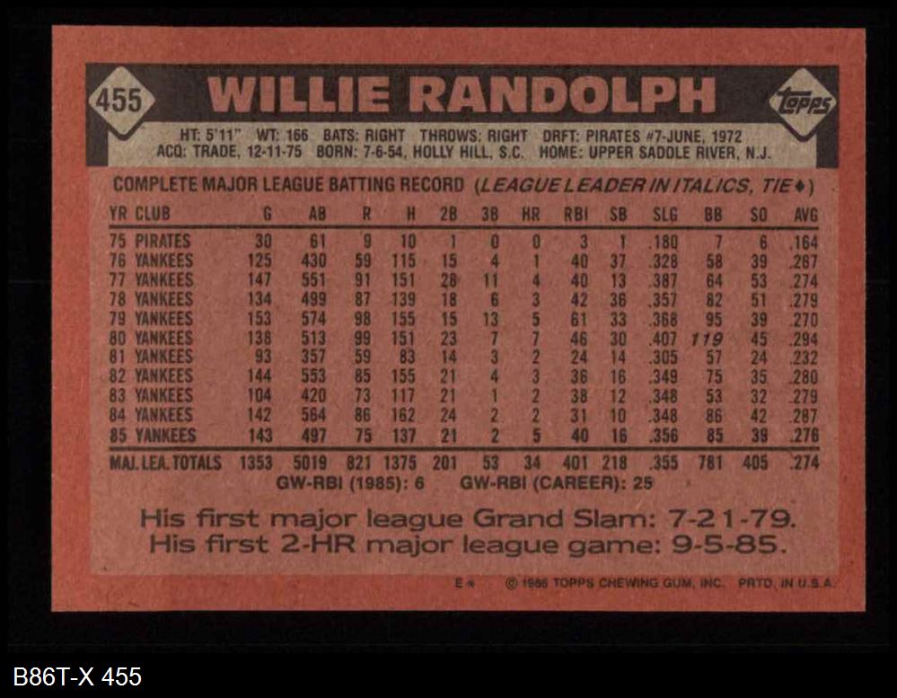 1986 Topps #455 Willie Randolph 8 - NM/MT