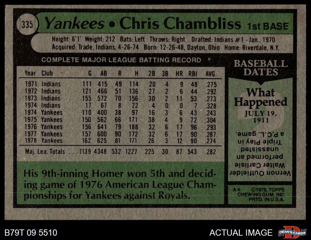 1979 Topps #335 Chris Chambliss 5 - EX